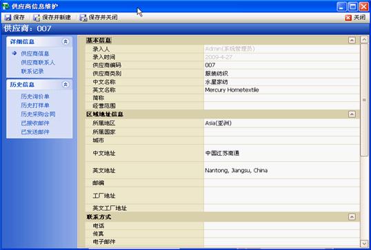完善的客户信息管理,采购员只能查询到对应自己负责的供应商,领导可以查询到所有的供应商资源。同时在一个界面中可以查询到往来的所有历史记录。 |