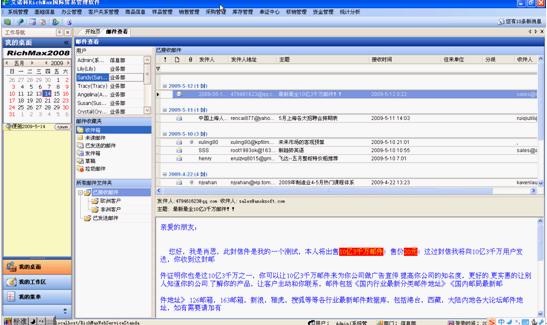 全新邮件管理功能,支持邮件分发、单发、群发、内部转发,实现了邮件统一集中管理与分配,客户与职员,供应商与职员,职员与职员间的所有邮件的监管和自动分配。 |